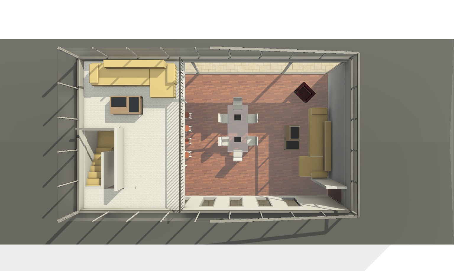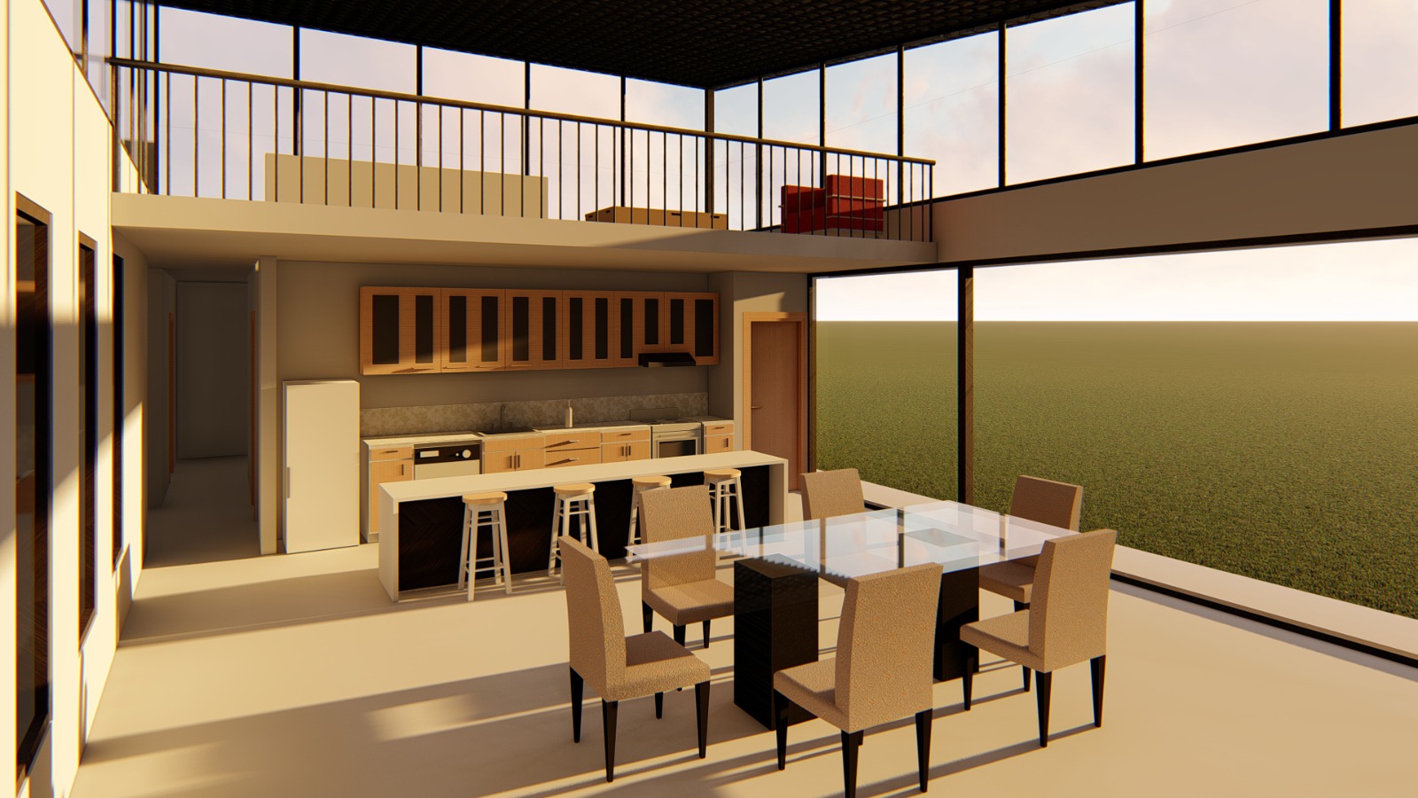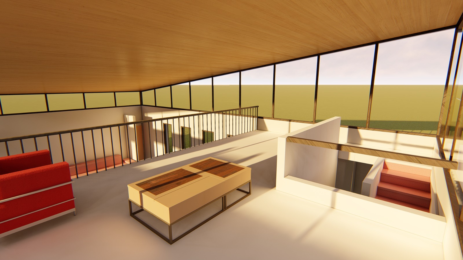 El altillo, proyectado como una sala de estar elevada, se convierte en el corazón visual de la casa: un mirador interior que invita a contemplar el exterior gracias a sus gran cantidad de ventanales.